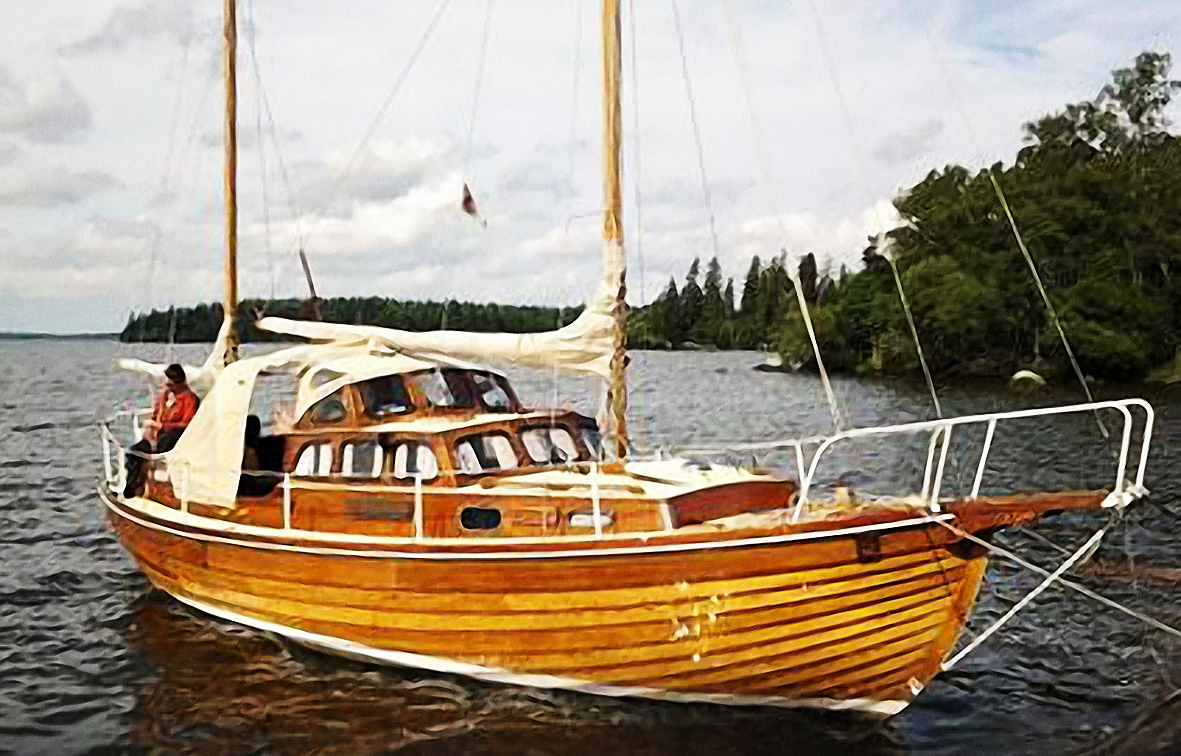 Statens maritima museer bedömer att motorseglaren Poseidon från 1966 är kulturhistoriskt värdefull. Båten är i ett exceptionellt gott skick. Poseidon är av typen ”Doris”, byggd och konstruerad vid Henrik J Askevik & sönner A/S i Hagavik utanför Bergen, Norge. Den aktuella båten var redan vid leverans ketchriggad, men samma modell såldes även utan rigg. Poseidon har genom åren endast haft en ägare – nämligen den som fortfarande underhåller och använder den idag. Det kan konstateras att underhållet skötts föredömligt, vilket är skälet till att båten fortfarande idag är i mycket gott skick. Foto: Sören Svanberg.