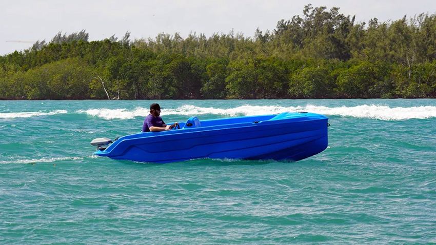 Plasten i den nya 17-fots ”Phantom” är helt återvinningsbar upp till nio gånger om, enligt tillverkaren. Den nya, lilla båten presenterades på Miami International Boat Show.