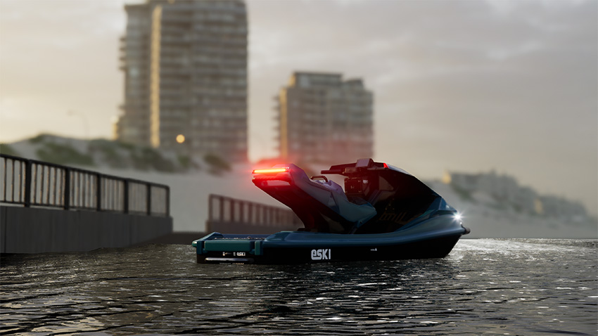 Den amerikanske ingenjören Jack Duffy-Protentis och hans företag eSki har tagit fram en jetski med utbytbara batterier som han hoppas kunna sätta i produktion snart. Bakgrunden till att han tagit fram fordonet är bland annat ett intresse sedan barndomen för jetskis och att han brinner för miljöfrågan.