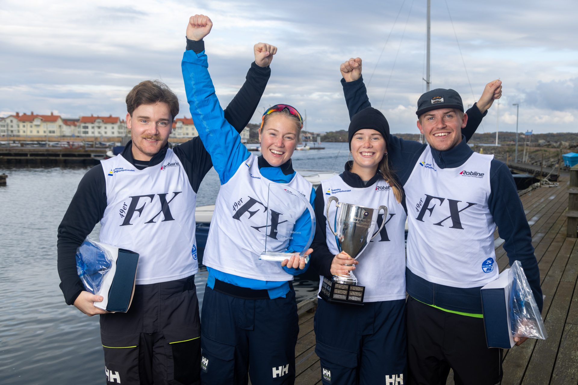 Vinnarna 2024 blev 49erFX med (fr. v): Gustav Fredriksson, Ellen Fredriksson, Ebba Fredriksson och Hugo Liljegren. Foto: Daniel Stenholm.