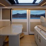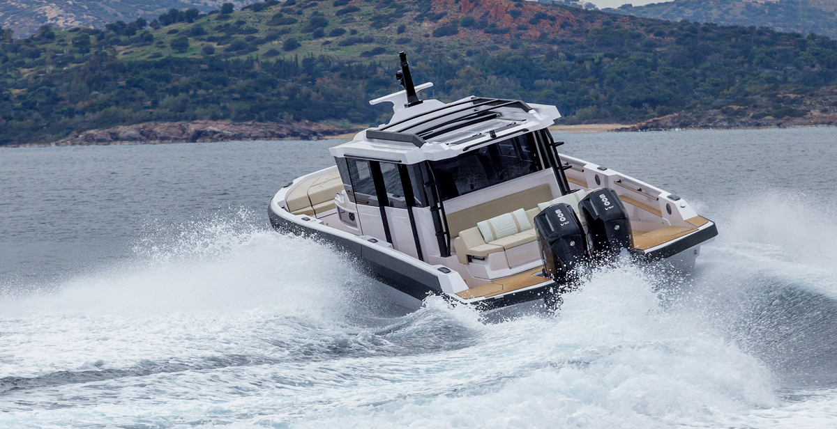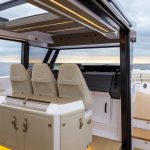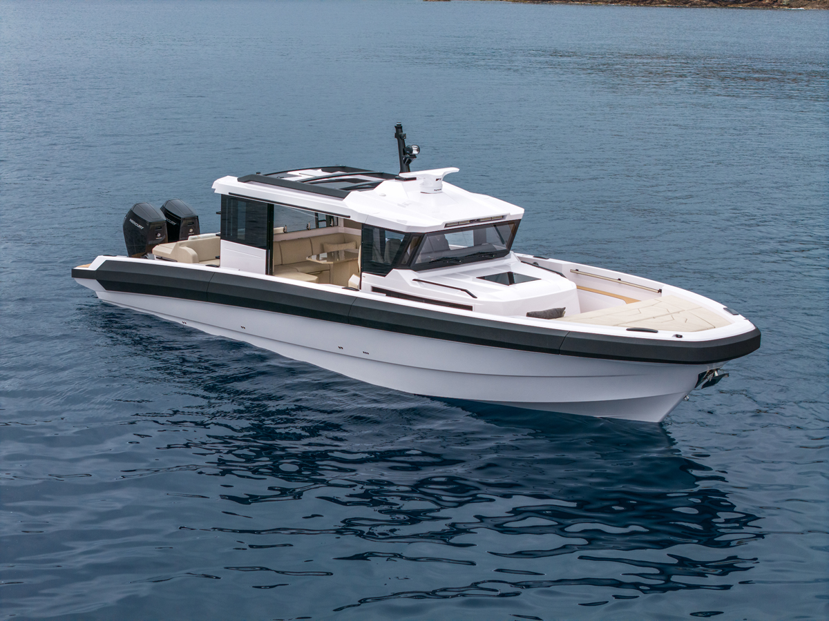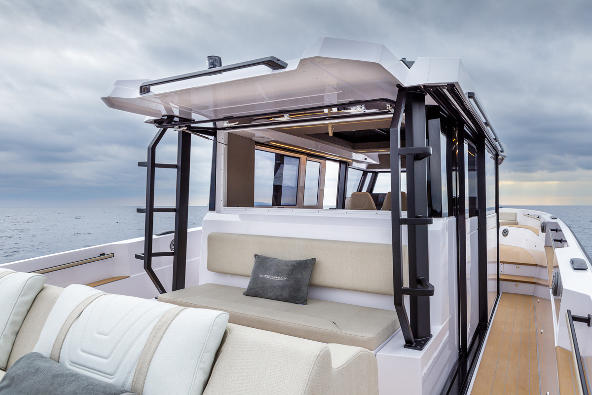Den helt skyddade och anpassningsbara överbyggnaden ger skydd i grov sjö. Med infällbara skjutdörrar, ett skjutbart soltak och ett helt öppningsbart akterfönster kan kabinen förvandlas från helt sluten till en öppen båt.
