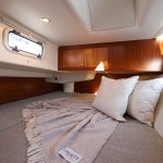 Segelstuven i fören överraskade positivt, den rymmer mer än väntat, både en code- och en gennaker får plats, plus sex fendrar, stege och kätting. Det fasta bogsprötet är väl genomtänkt, med stöd för en integrerad, elektrisk rulle som gör undanvindsseglingen enkel, rolig och tillgänglig även för ensamseglaren. Linjett 36 kombinerar seglingsglädje, trygghet och komfort i ett nätt och smidigt format, precis som det var tänkt.