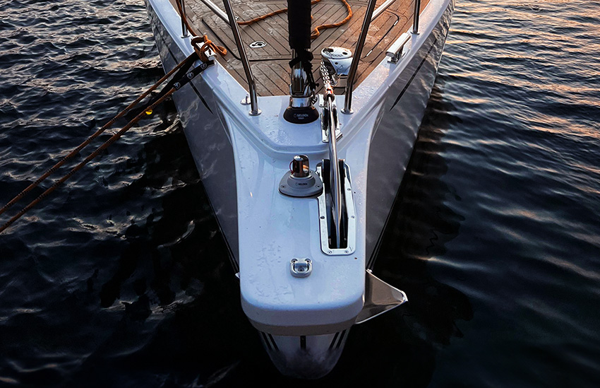 Segelstuven i fören överraskade positivt, den rymmer mer än väntat, både en code- och en gennaker får plats, plus sex fendrar, stege och kätting. Det fasta bogsprötet är väl genomtänkt, med stöd för en integrerad, elektrisk rulle som gör undanvindsseglingen enkel, rolig och tillgänglig även för ensamseglaren. Linjett 36 kombinerar seglingsglädje, trygghet och komfort i ett nätt och smidigt format, precis som det var tänkt.