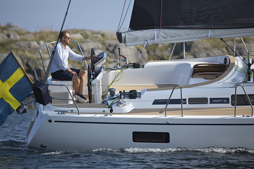 – Linjett 36 har härliga egenskaper när det blåser. Det är en kraftfull båt för sin storlek, där alla ska känna sig trygga, säger Markus Gustafsson På Linjett Yachts.