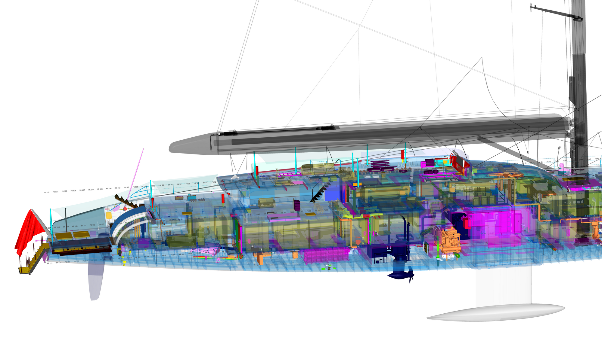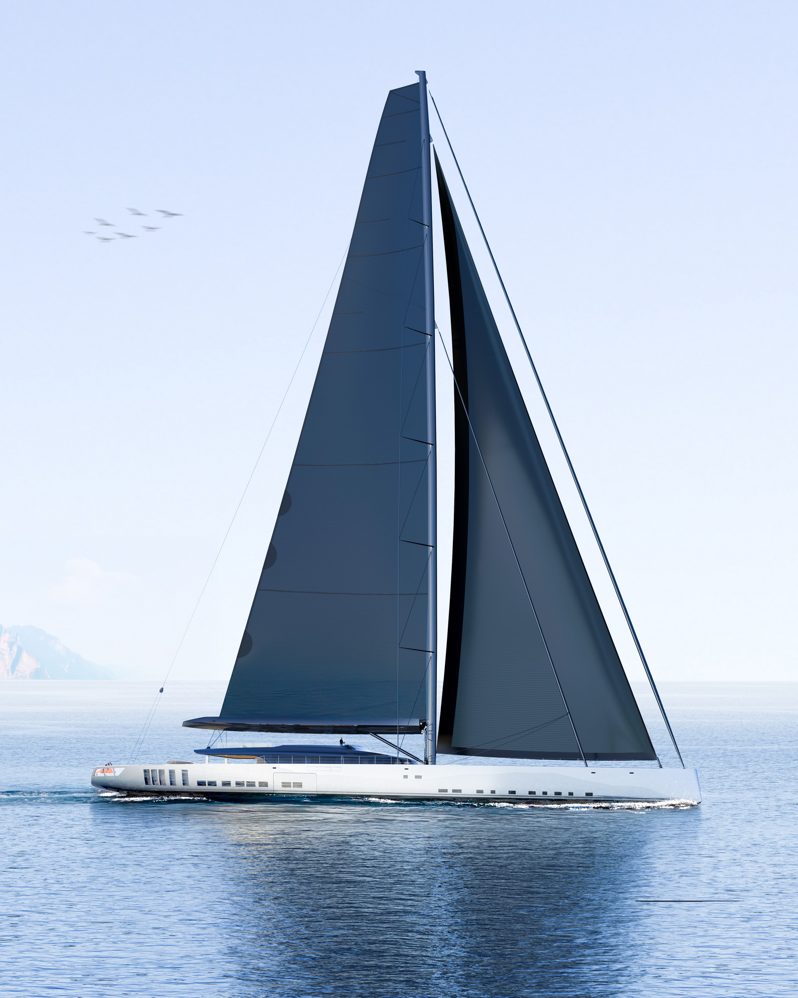 Malcolm McKeon Yacht Design (MMYD) utvecklade den ambitiösa yachten och den moderna, iögonfallande exteriöra stylingen. Winch Design skapade den eleganta interiören i denna superstora segelbåt som har kolfiberrigg från Rondal.