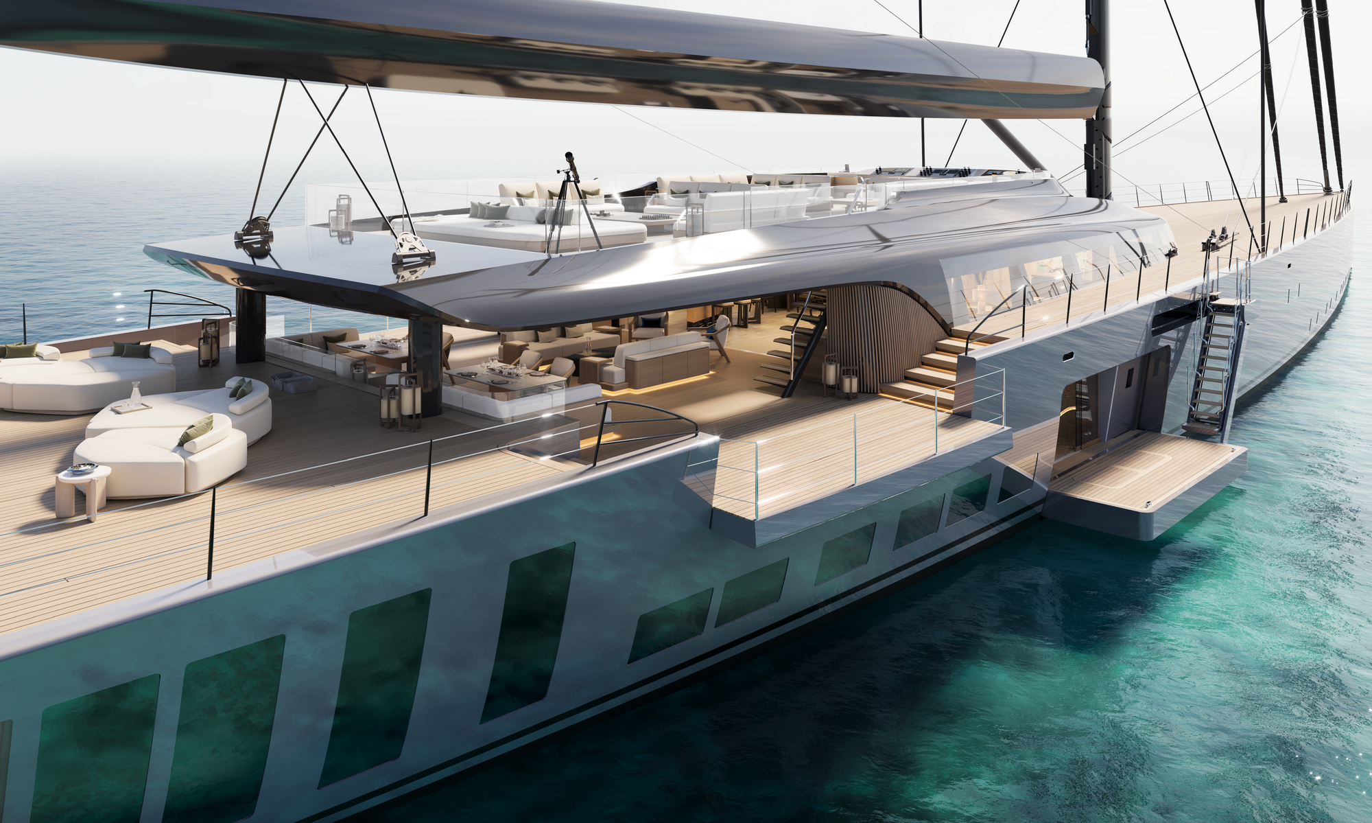 Yachten är skapad för världsomseglingar med mycket bra seglingsprestanda. Hennes långa vattenlinje, lyftköl och konstruktion helt i aluminium med optimerad viktfördelning i kombination med en kraftfull Rondal-rigg, kommer att göra SKY till en riktig XXL-superyacht. Hon seglar snabbare än vinden och snabbare än en motoryacht av liknande längd. Vid rodret ger reglagen, det integrerade seglingssystemet och de dubbla rodren i kolfiber manövrerbarheten och enkelheten hos en prestandasegelbåt under 50 m, enligt designern. Flybridgen och olika sittgrupper möjliggör mångsidigheten av utomhusliv, utmärkt sikt och skydd mot solen.