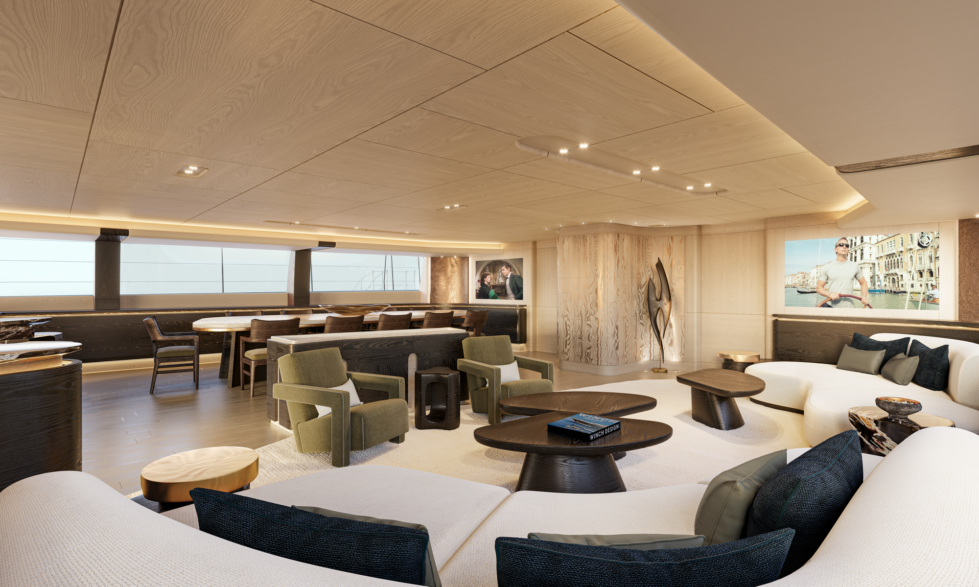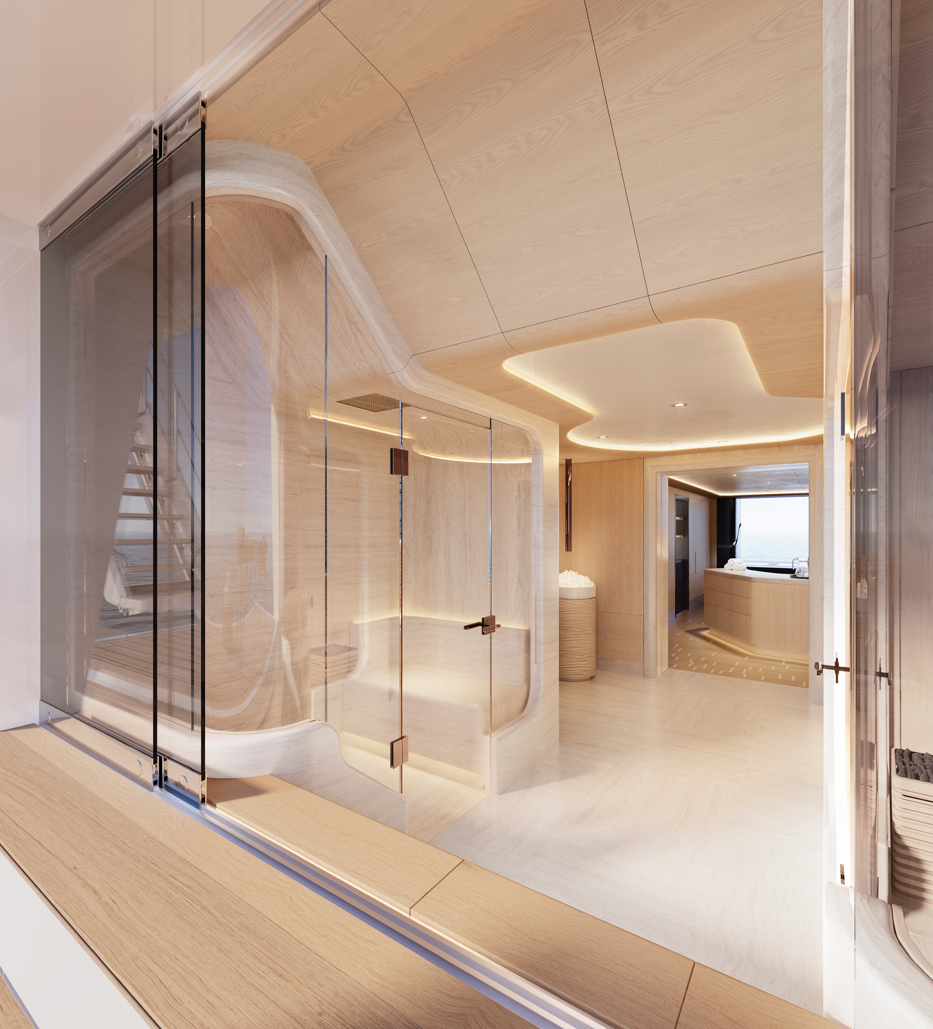 Interiören rymmer tio till tolv ägare och gäster. Inredningen kommer att vara en ”arkitektonisk fristad till sjöss” med rena, skulpturala linjer, naturliga texturer och lugna paletter förfinade med subtila lyxiga detaljer.