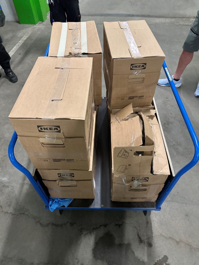 Sju flyttlådor med sammalagt 140 kokain hittades i den rumänska skåpbilen. Foto: Tullverket.