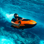 Det tyska företaget Cayago har snitsat till Seabob genom ett samarbete med den italienska sportbilstillverkaren Lamborghini. Målet är att ge sportbilskänsla även under vattenytan.