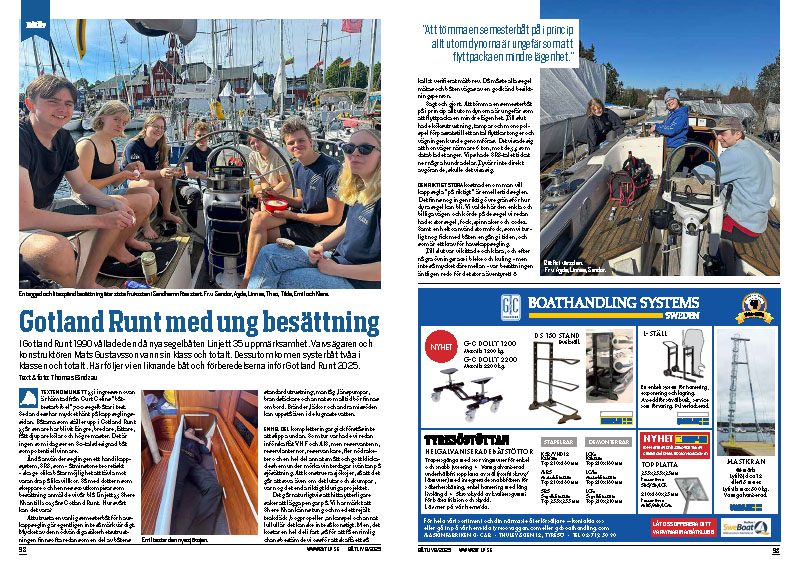 I Gotland Runt 1990 vållade den då nya segelbåten Linjett 35 uppmärksamhet. Varvsägaren och konstruktören Mats Gustavsson vann sin klass och totalt. Dessutom kom en systerbåt tvåa i klassen och totalt. Här följer vi en liknande båt och förberedelserna inför Gotland Runt 2025. – Ur Båtliv 6-25