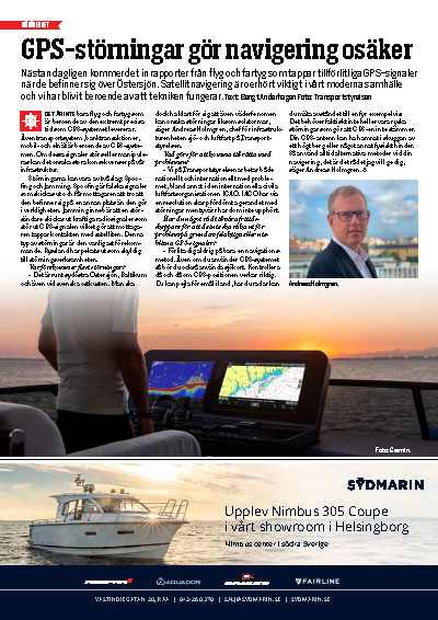 Nästan dagligen kommer det in rapporter från flyg och fartyg som tappar tillförlitliga GPS-signaler när de befinner sig över Östersjön. Satellitnavigering är oerhört viktigt i vårt moderna samhälle och vi har blivit beroende av att tekniken fungerar. – Ur Båtliv 6-25