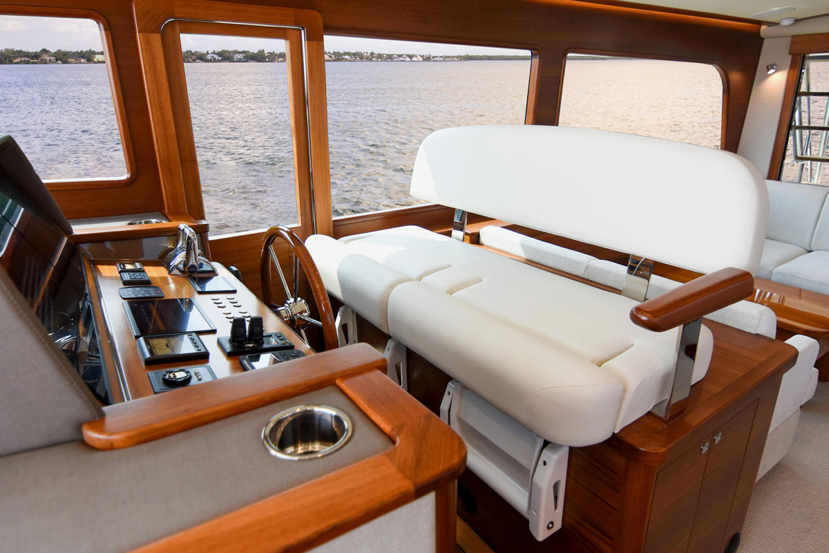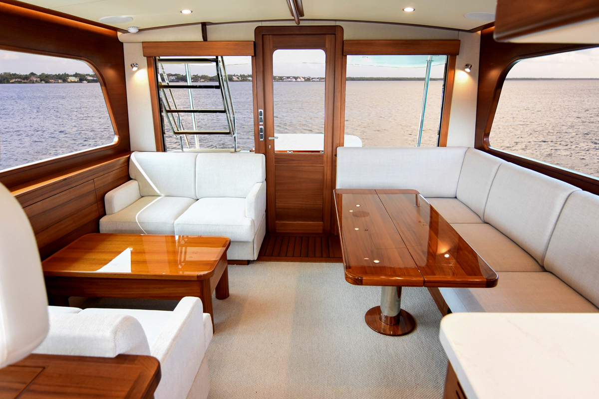 Den här modellen återspeglar Grand Banks tillvägagångssätt för att skapa långfärdsyachter. GB54:an som visas har en modern europeisk interiör med ljusa teakfodrade utrymmen, stora fönster och ljusinsläpp. Huvuddäckssalongen inkluderar en lounge, matplats och invändig styrplats sömlöst ansluten till ett fullt utrustat pentry i EU-stil. Elektriska persienner, full luftkonditionering och centralvärme säkerställer optimala levnadsförhållanden året runt.