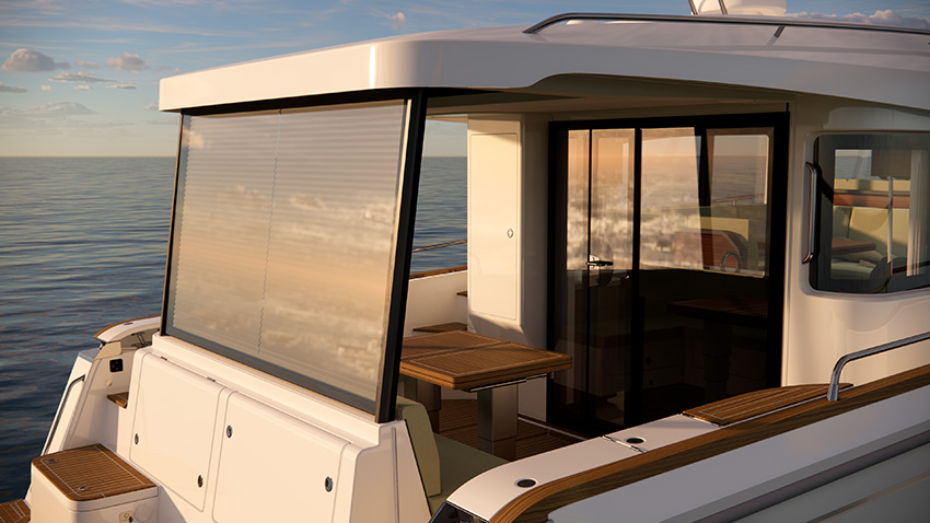 För båtar som används i Medelhavet eller nordamerikanskt klimat skapar generösa takfönster en utmaning: hur hanterar man värme och solljus utan att offra den öppna känslan som gör dem så eftertraktade?