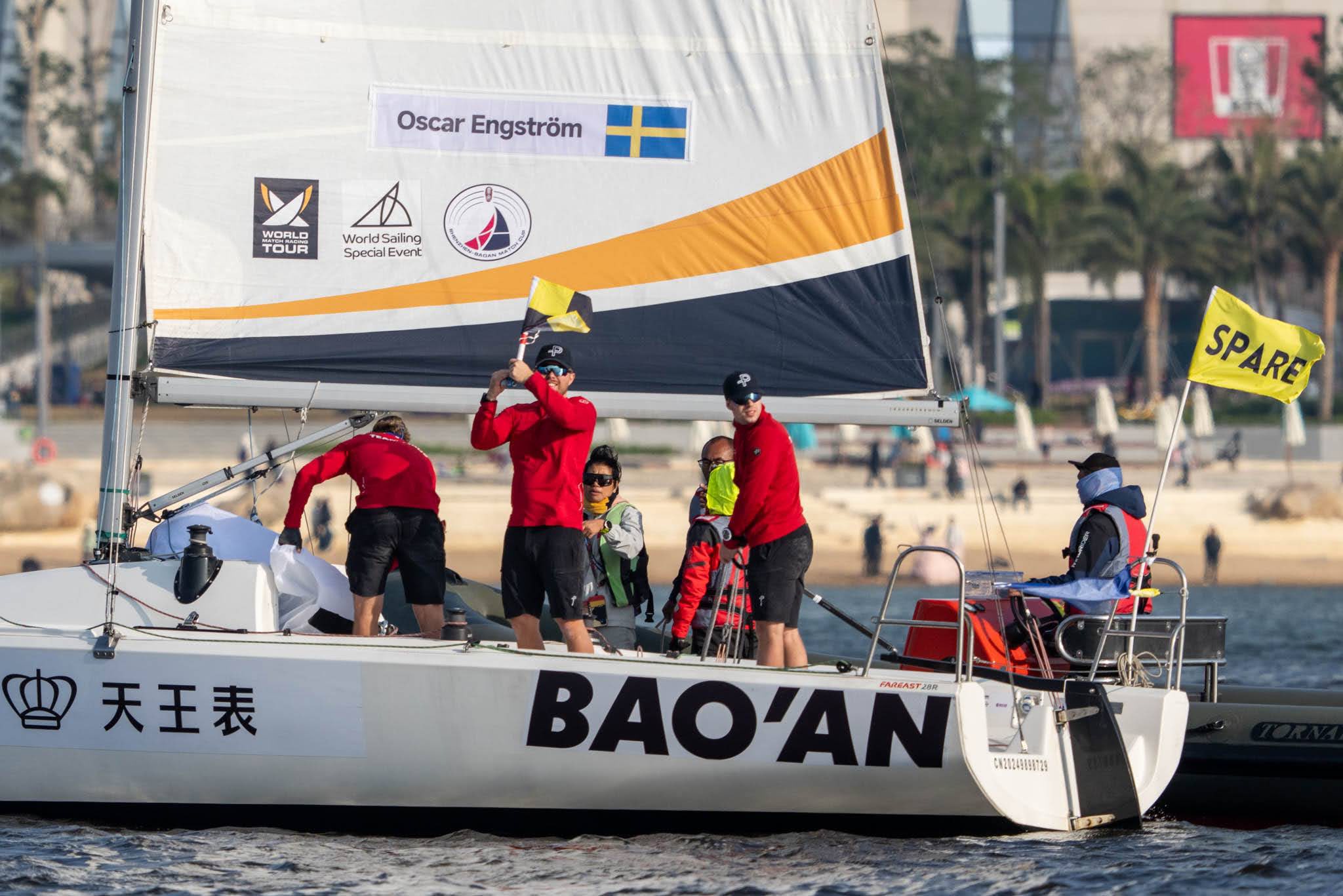 Oscar Engström med besättningen Rasmus Alnebeck, Emil Wolfgang och Filip Karlsson från Göteborgs Kungl. Segelsällskap (GKSS) vann silver när VM i matchracing avgjordes i Shenzhen, Kina, 11 januari.