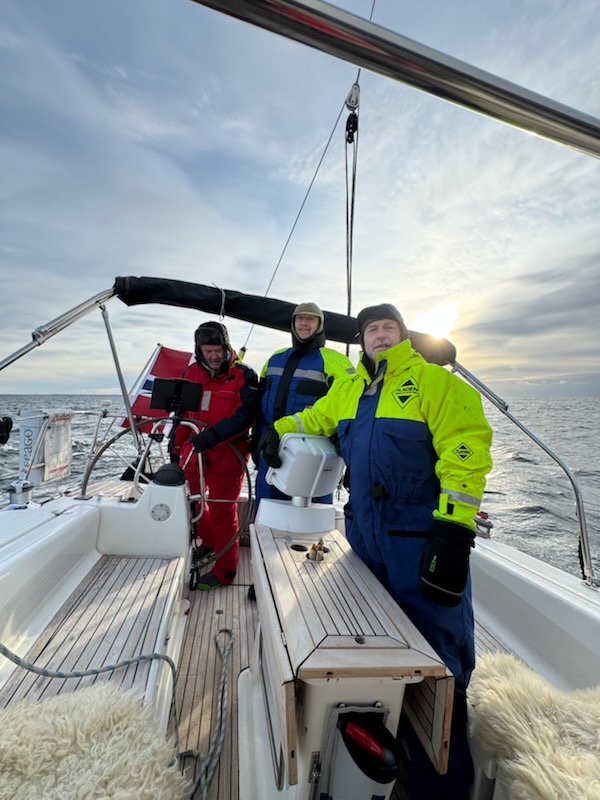 Full vinterklädsel för Vinterseilasen. Tor Ole Borge, Stienar Vigdal och Nils Storli.