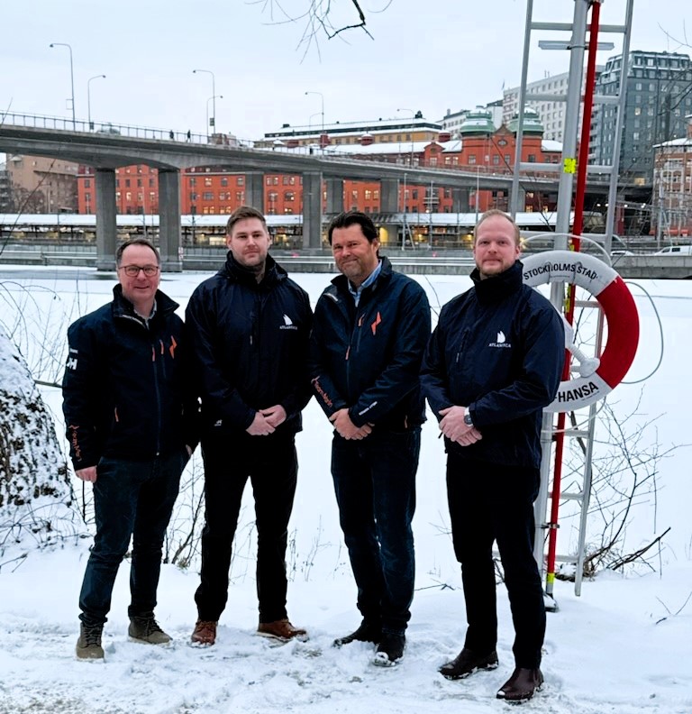 Bakom samarbetet kring FlipMarine står från vänster: Niklas Eriksson, Team Marin, Mathias Andersson, Trygg-Hansa, Jens Johansson, Team Marin, Tobias Ingberg, Atlantica.