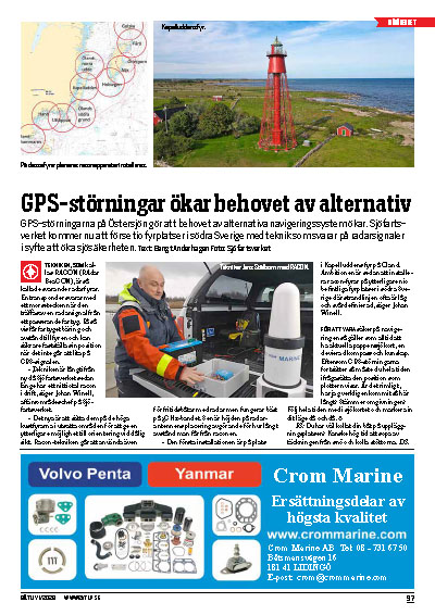GPS-störningarna på Östersjön gör att behovet av alternativa navigeringssystem ökar. Sjöfartsverket kommer nu att förse tio fyrplatser i södra Sverige med teknik som svarar på radarsignaler i syfte att öka sjösäkerheten. – Ur Båtliv 1-26