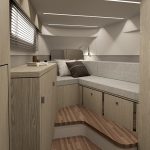 Den kompakta MP10 har en matplats med en soffa vars ryggstöd både kan lutas och fällas ner, vilket gör att den fungerar som sittplats vid bordet eller som solsäng. MP10 har boendemöjligheter, en matplats utrustad med en bäddsoffa, en dubbelkoj akteröver och ett badrum med dusch. Bekväma sidodäck ger enkel tillgång till fördäck i båda modellerna.