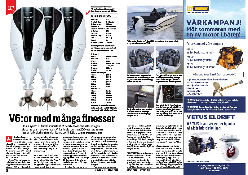 Dela på FacebookDela på TwitterDela på Linkedin I sina nya V6:or har Honda satsat på detaljer som förenklar köregenskaperna och manövreringen. Vi har testat den nya 200-hästaren som har en förbrukning på under litern upp till 32 knop. – Ur Båtliv 1-26