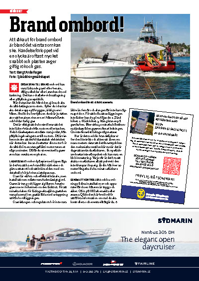 Dela på FacebookDela på TwitterDela på Linkedin Att råka ut för brand ombord är bland det värsta som kan ske. Händelseförloppet vid en olycka är oftast mycket snabbt och plasten avger giftig rök och gas. – Ur Båtliv 2-26