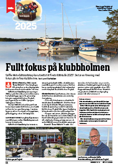 1 april, 2026Fullt fokus på klubbholmen Dela på FacebookDela på TwitterDela på Linkedin Säffle Motorbåtssällskap har utsetts till ”Årets Båtklubb 2025”. Det är en förening med fokus på sin fina klubbholme. – Ur Båtliv 2-26 FöregåendeFöregående inlägg:Nordisk yacht i kompakt format