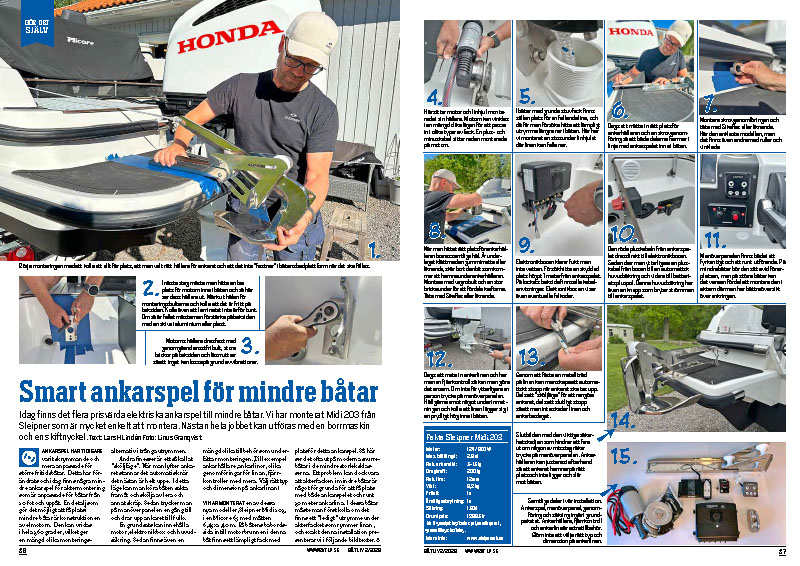 1 april, 2026Smart ankarspel för mindre båtar Dela på FacebookDela på TwitterDela på Linkedin Idag finns det flera prisvärda elektriska ankarspel till mindre båtar. Vi har monterat Midi 203 från Sleipner som är mycket enkelt att montera. Nästan hela jobbet kan utföras med en borrmaskin och en skiftnyckel. – Ur Båtliv 2-26 FöregåendeFöregående inlägg:Renoverad bruksbåt blev K-märkt NästaNästa inlägg:LITEN HAMN MED TREVLIG STÄMNING