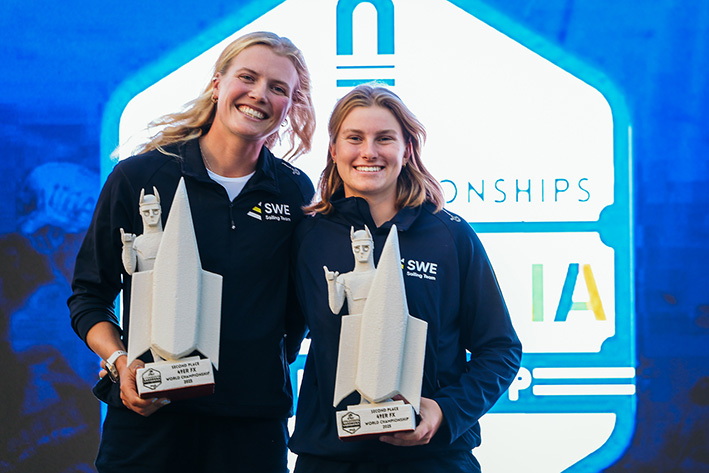 Vilma Bobeck och Ebba Bentsson efter VM-silvret hösten 2025. Foto: Sailing Energy.