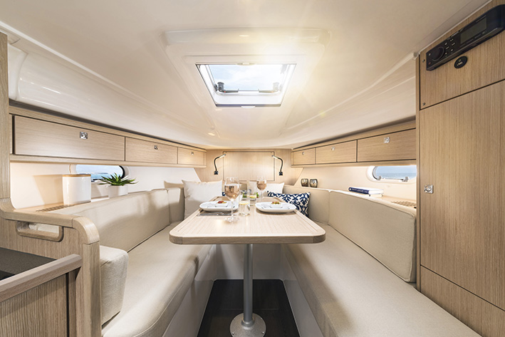 Här märks även elektronik från B&G, inklusive sjökortsplotter, instrumentdisplayer, VHF-radio med AIS och en autopilot med fjärrkontroll. Båtarna har en kraftfullare motor som annars skulle kosta extra samt fina detaljer som rostfria knapar, fendrar, förtöjningslinor, teak på sittdynorna och sittbrunnsdurken, ett stort sittbrunnsbord, handtag i rostfritt stål, läslampor med USB-portar och myggnät för fönstren.